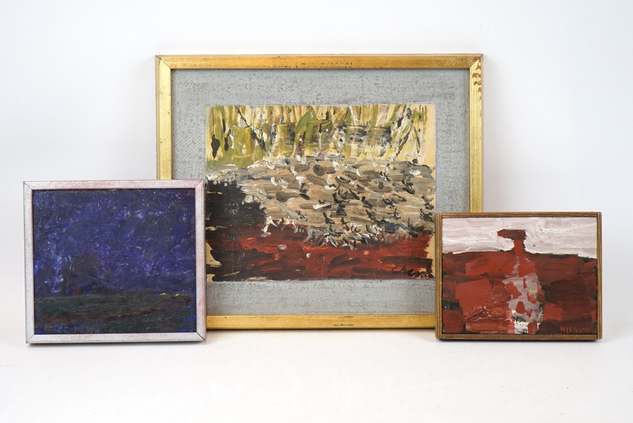 Oidentifierad konstnär, 3 st, olja på pannå, signerade.
