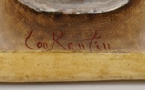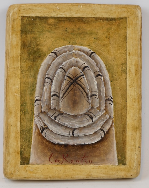 Auktioner Konst & Grafik Oidentifierad, olja på träpannå, signerad och signerad a tergo, Lou Xantin Pacea.
