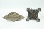 Bilder Brevställ och bordslampa, metall/sten.