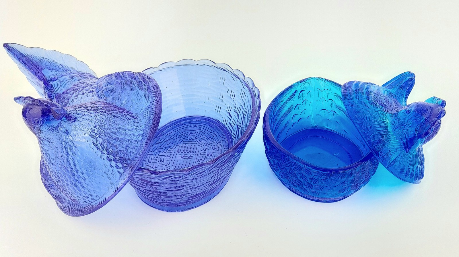 Bilder PRESSGLAS I BLÅTT, LJUSSTAKAR, ÄGGHÖNOR