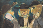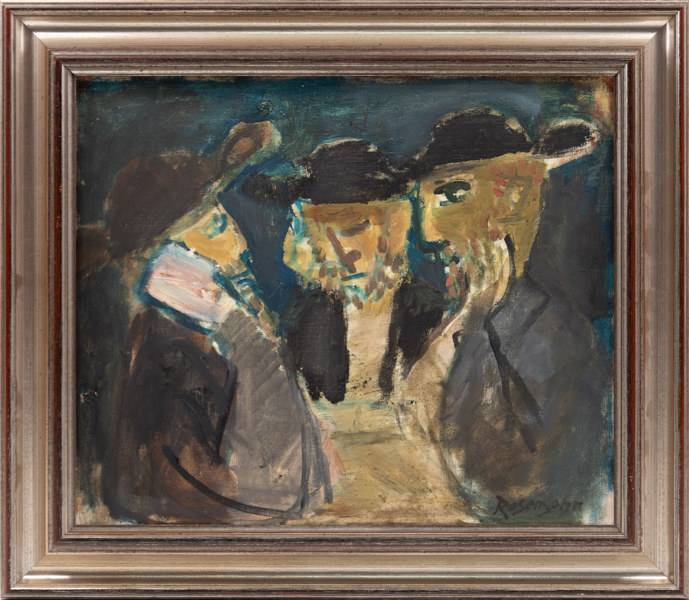 Lennart Rosensohn, olja på duk, tre män i samtal signerad, mått med ram ca 61 x 53 cm