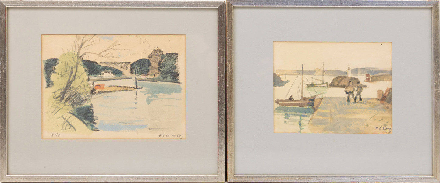 Ove Olsson, akvarell daterad -77 samt färglitografi numreread 3/15 samt daterad -68, signerade, 32x26 cm och mindre
