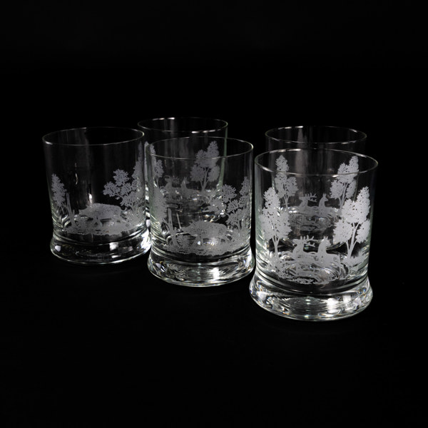 Whiskyglas, 5 st, med viltmotiv, höjd 10 cm