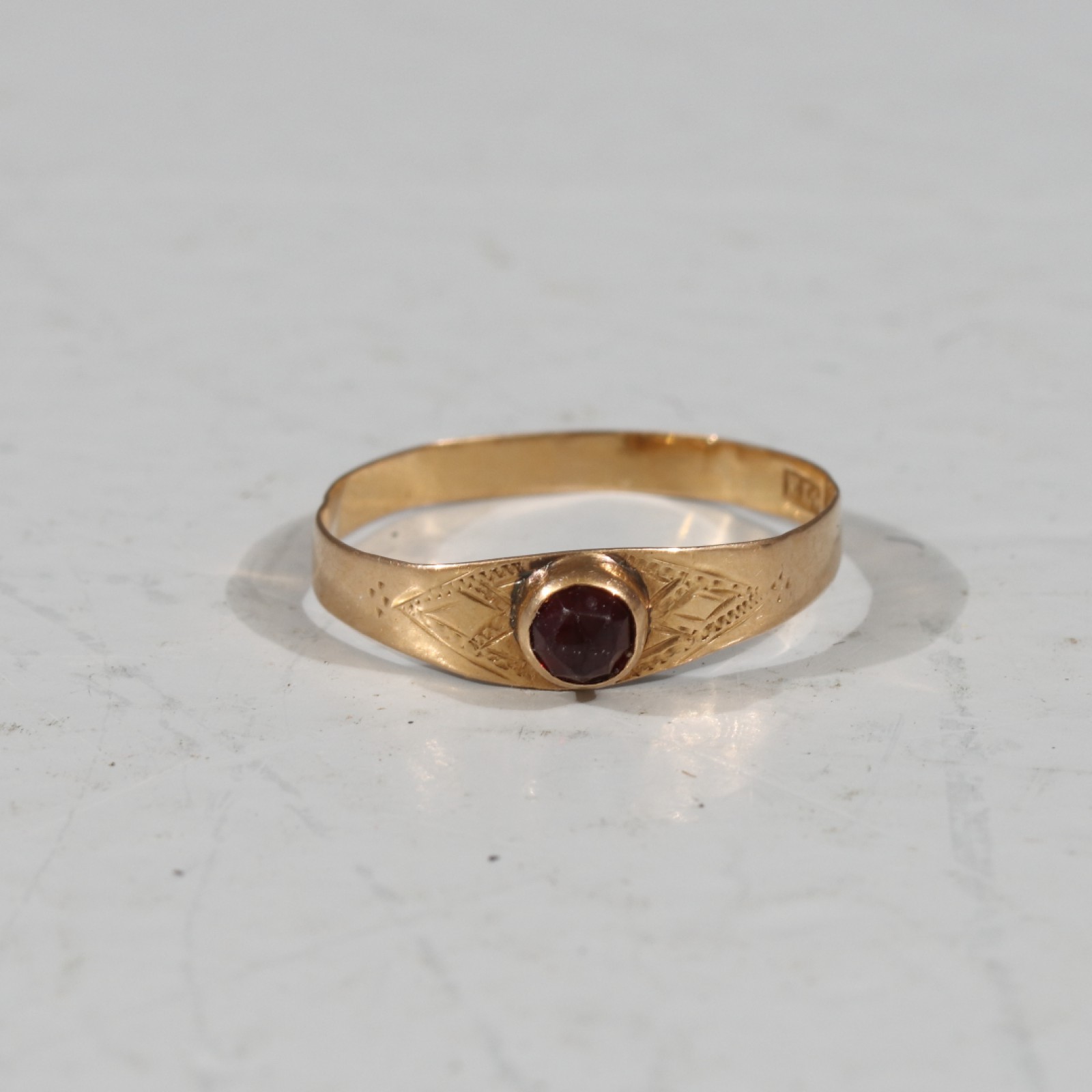 Bilder RING I 18K GULD MED LITEN RÖD STEN
