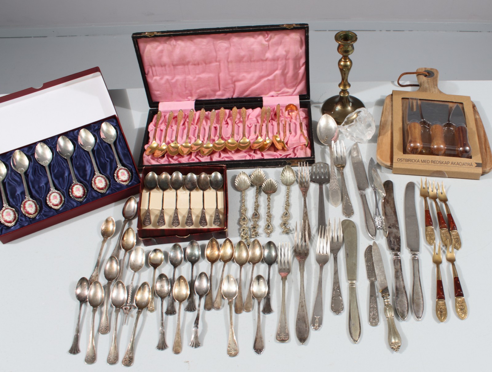 Samling, de flesta delarna i nysilver, olika modeller. (vån3)