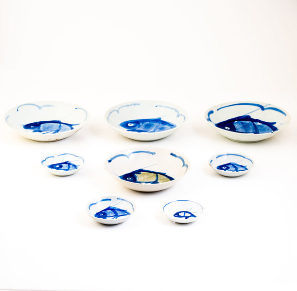 Porslin, dekor med koifiskar, diam 9 - 23 cm