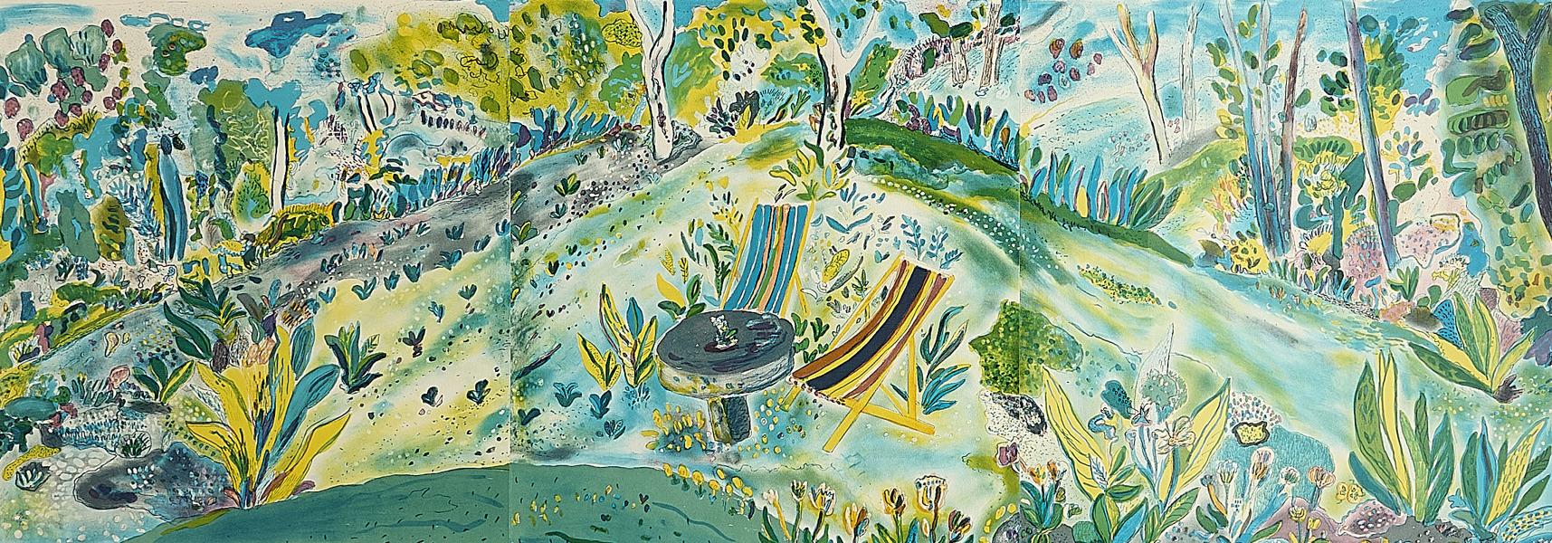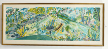 "Barcelona", signerad och daterad 1977-78, färglitografi, triptyk, numerad 9/225, bildmått 57 x 156 cm