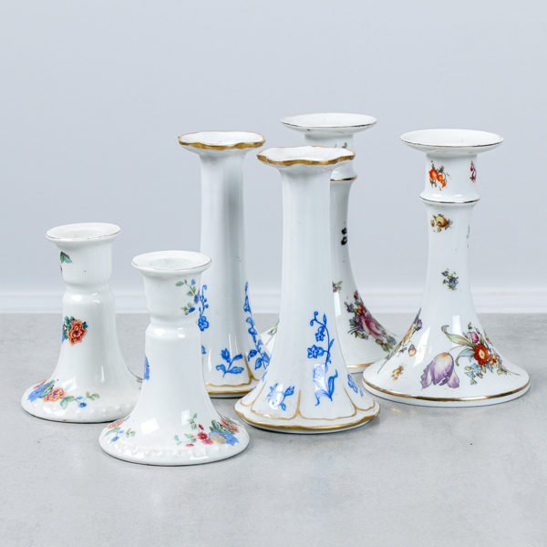 Ljusstakar, 3 par, porslin, Aluminia, Bavaria, Rosenthal