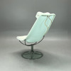 Fåtölj Jetson 66 av Bruno Mathssson International. Design Bruno Mathsson. Fot av kromad metall. Vit bärväv av canvas och vit skinnklädsel med lös nackkudde. Snurrbar. Etikettmärkt.