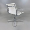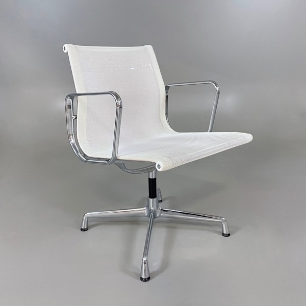 Designstol från Vitra. Modellen Aluminium Chair EA 108 är formgiven av Charles & Ray Eames 1958. Stilren stol som lämpar sig som både konferensstol och kontorsstol för kontoret eller hemmet. Klädd i vit mesh med kromade detaljer. Nypris ca 23.000:-