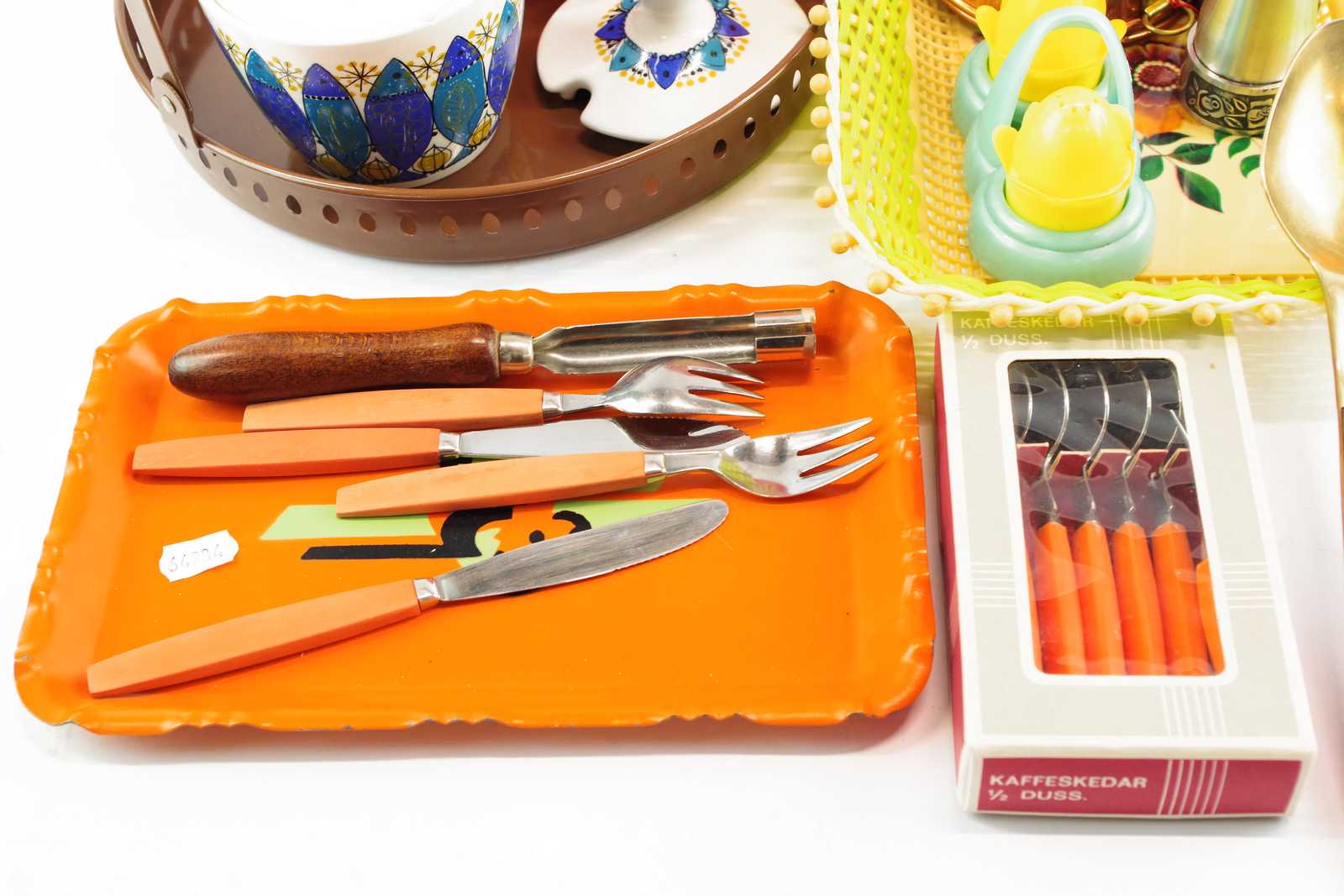 Bilder BRICKA D:24 cm, KAKFAT, KRYDDKAR, KAFFESKEDAR mm Retro (skador förekommer)
