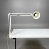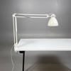 Krämvit skrivbordslampa från Luxo. Modellen heter L-1 och utformades redan 1937 av Jac Jacobsen. L-1 är en 3-ledad lampa med flexibel fjäderbalanserade armar med ett skrivbordsklämma.
