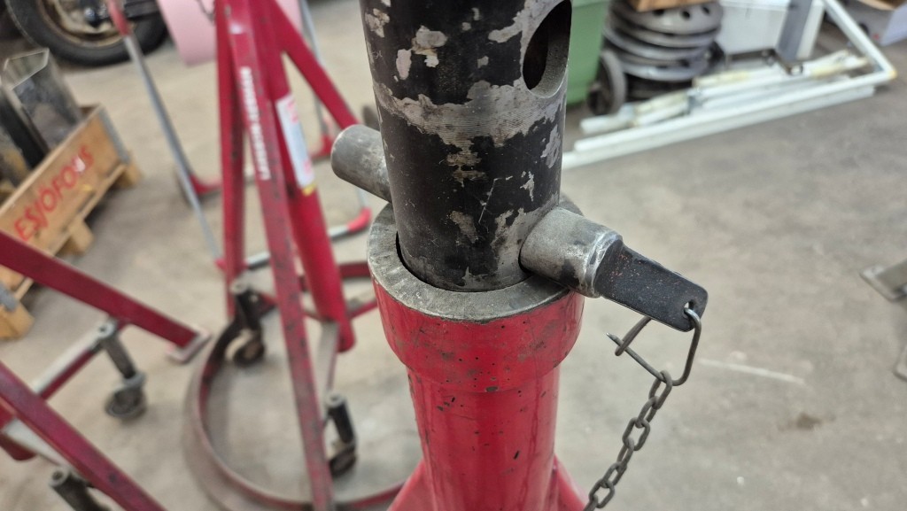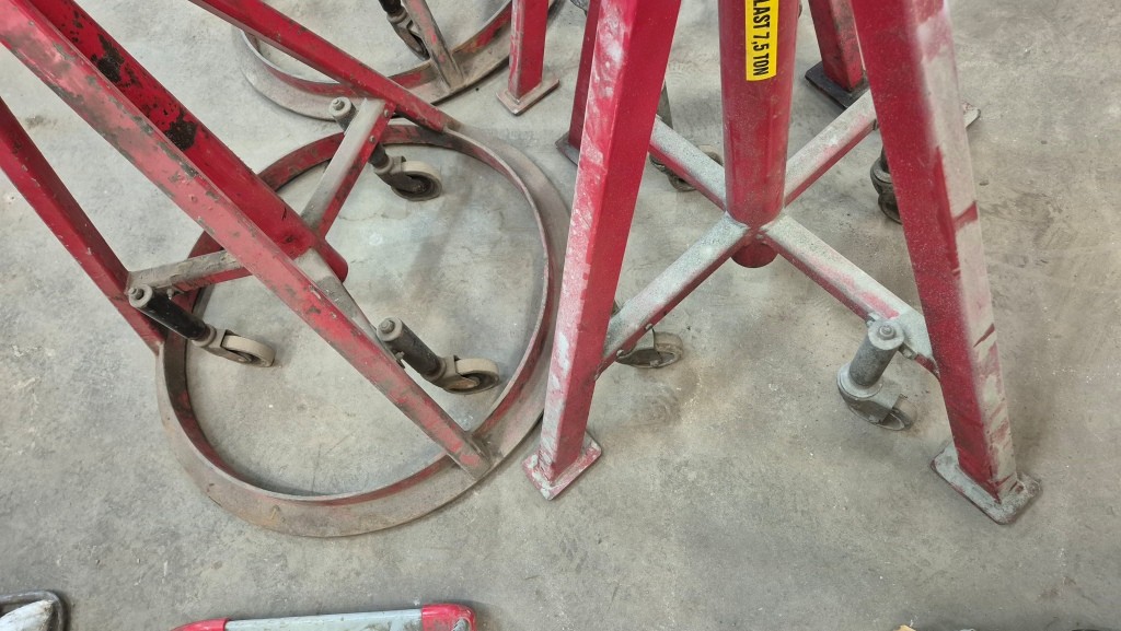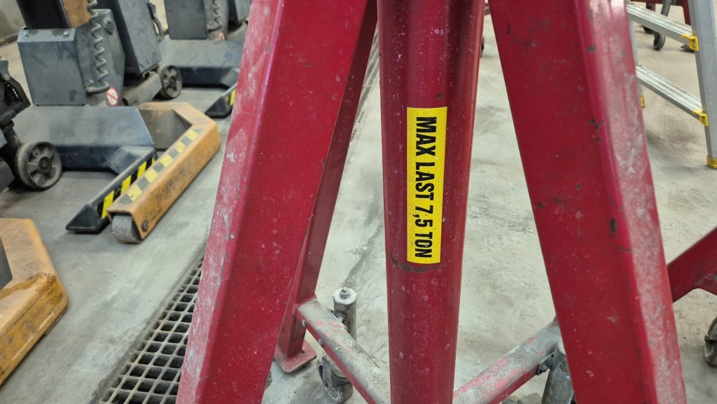 4st höga pallbockar, 2st märkt med 7,5 ton, 2st utan märkning.Min höjd: 128 cmMax höjd: 192 cm