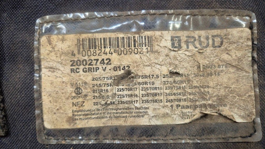 Begagnade snökedjor RUD RC GRIP VPassande däckdimensioner visas på bild.