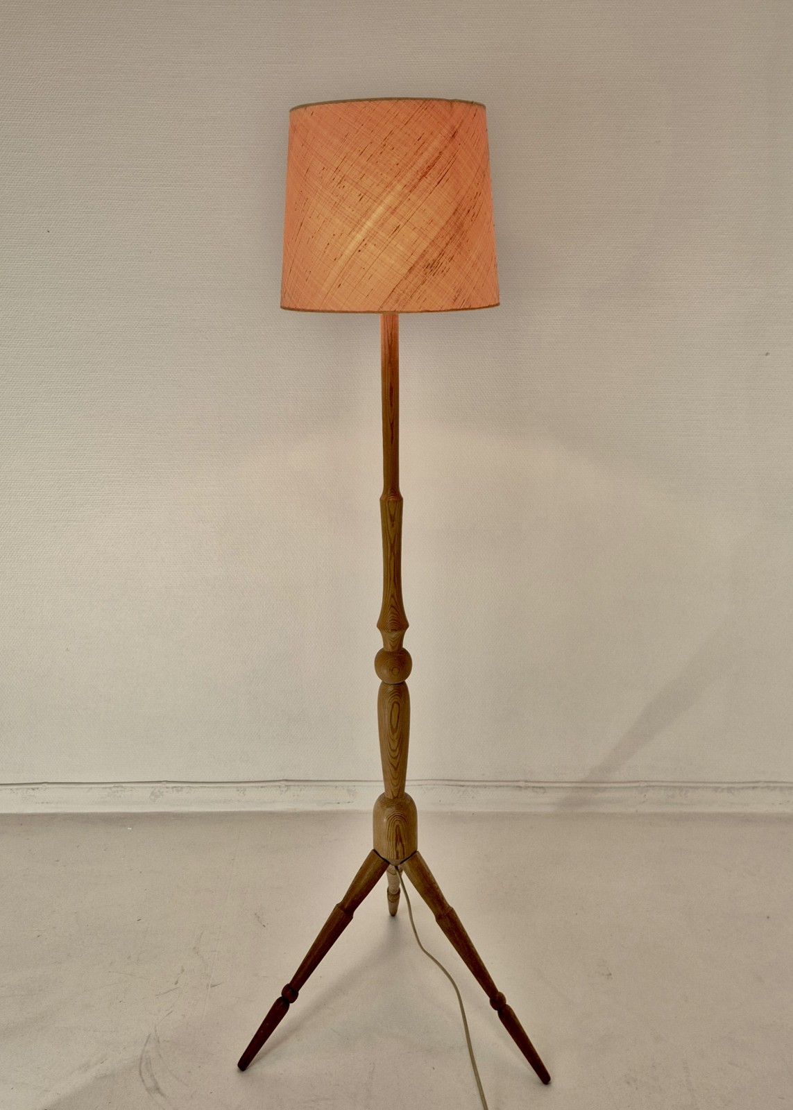 Bilder RETRO GOLVLAMPA, svarvad fot, furu