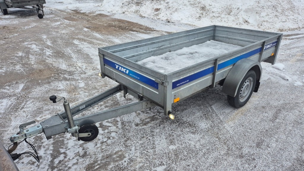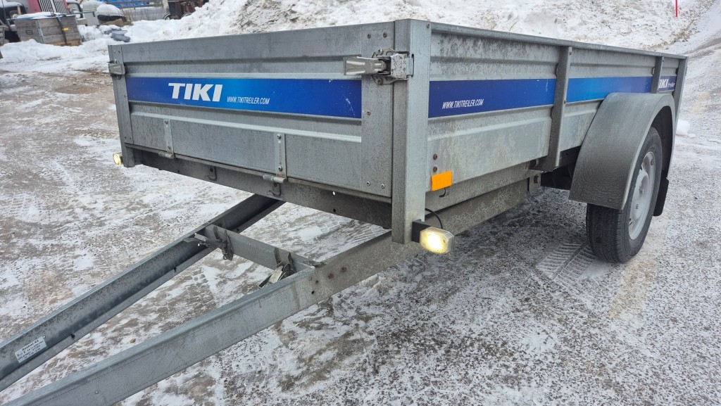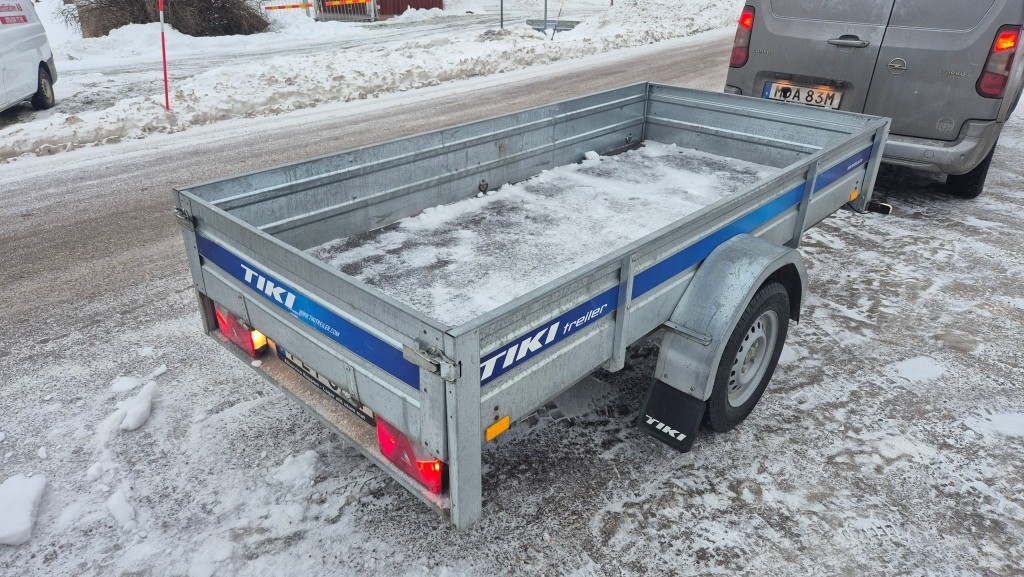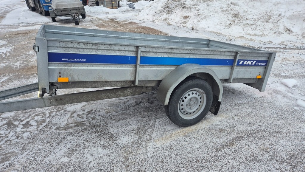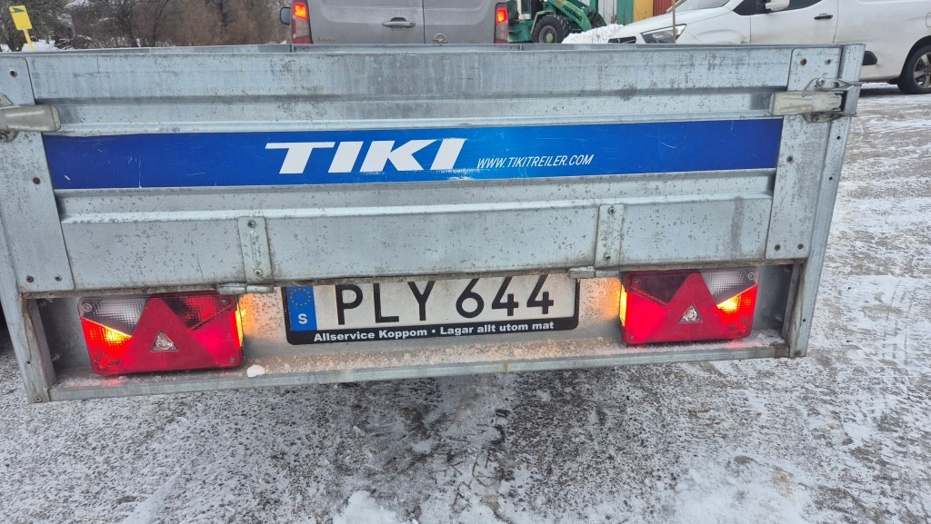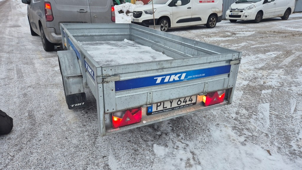 Tippbar släpkärra Tiki CS265-RRegnr: PLY644Besiktad tom: 2026-04-30Totalvikt: 750 kgMax lastvikt: 568 kgLastmått: 270x125cmSommardäck - mönsterdjup: 3-4mm