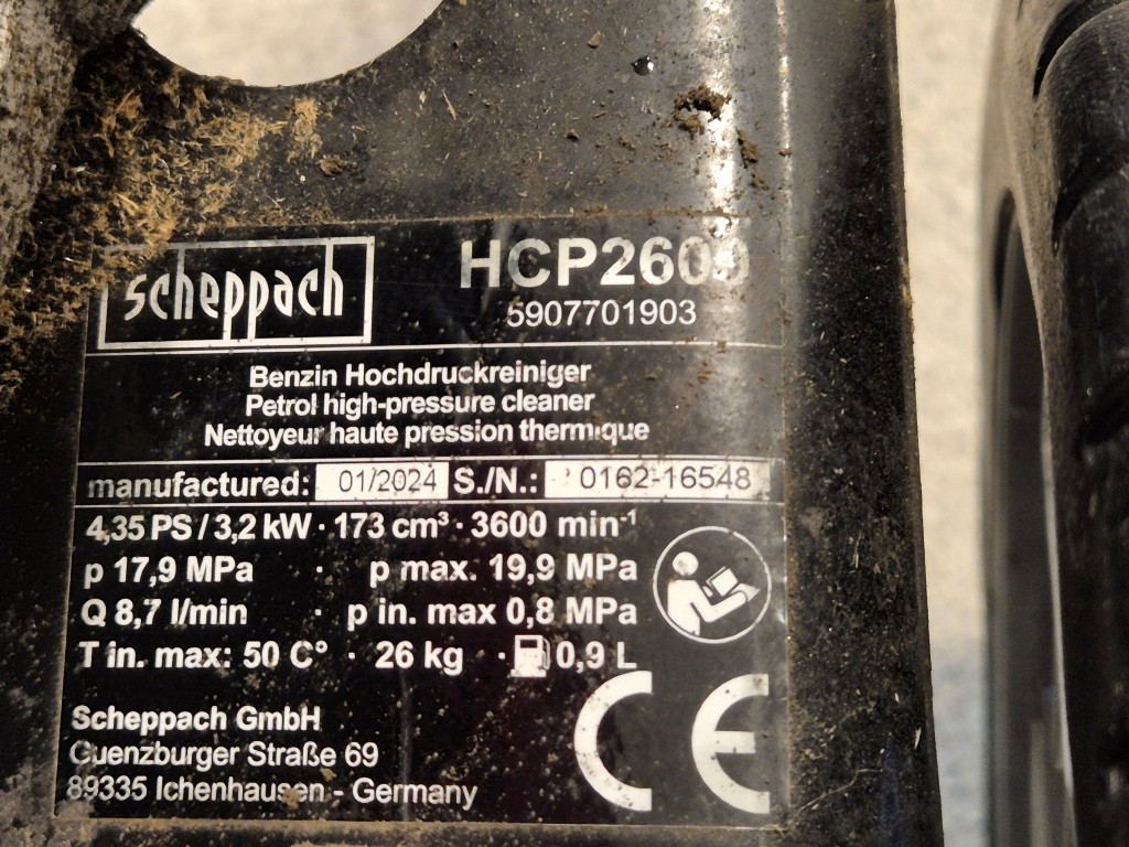 Bensindriven högtryckstvätt ScheppachModell: HCP2600Funktionstestad: OK