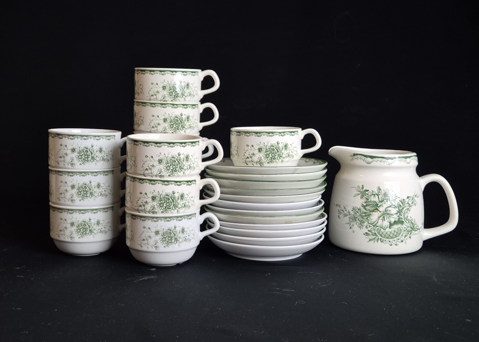GRÖNA ANNA, tekoppar, fat, kanna