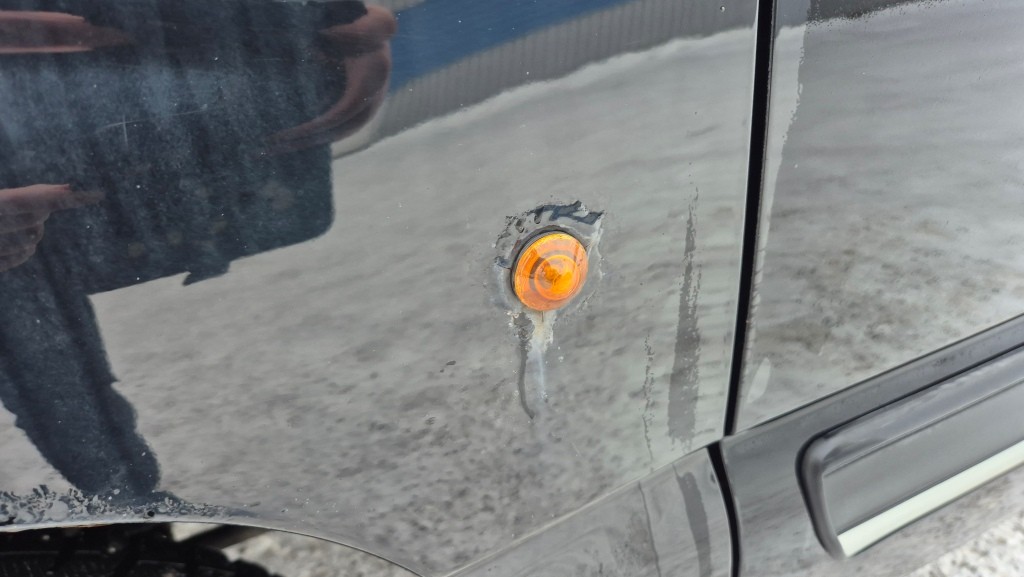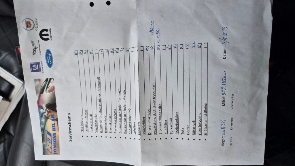 Fördelningslådan renoverad 2025Spricka i framrutanMindre rostangrepp, främst på skärmkanter fram, samt runt skärmblinkerslampor.