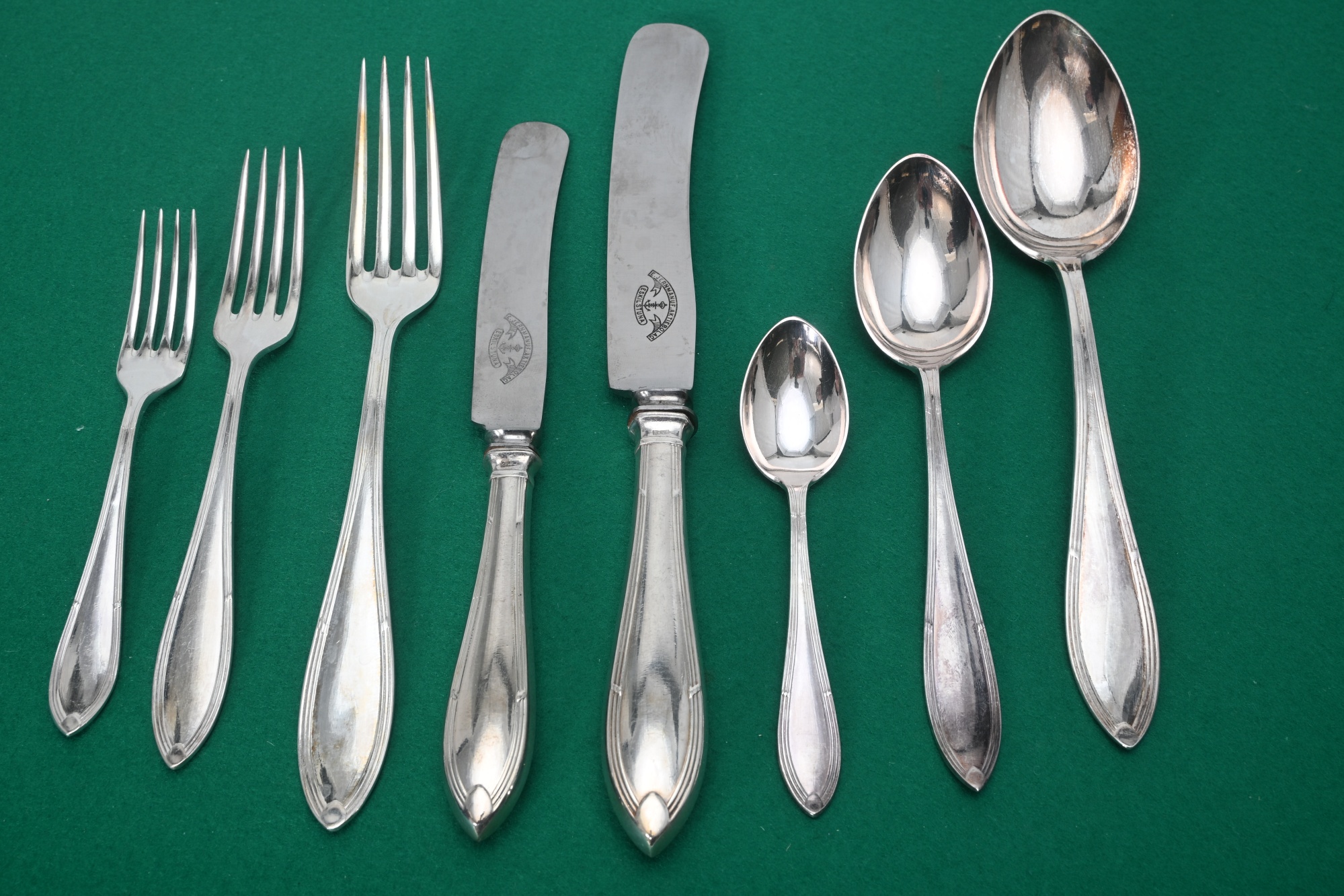 Graverade på baksida, 12 st av varje förutom stor gaffel 9st
