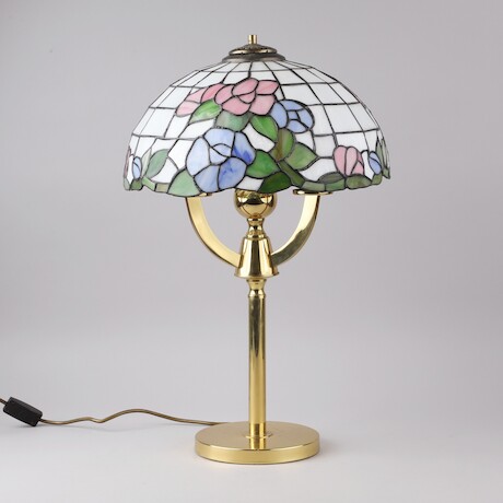 Bordslampa, tiffanysstilskärm, fot mässing, samtida, H = 60