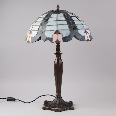 Bordslampa, tiffanysstilskärm, fot keramik, samtida, H = 66