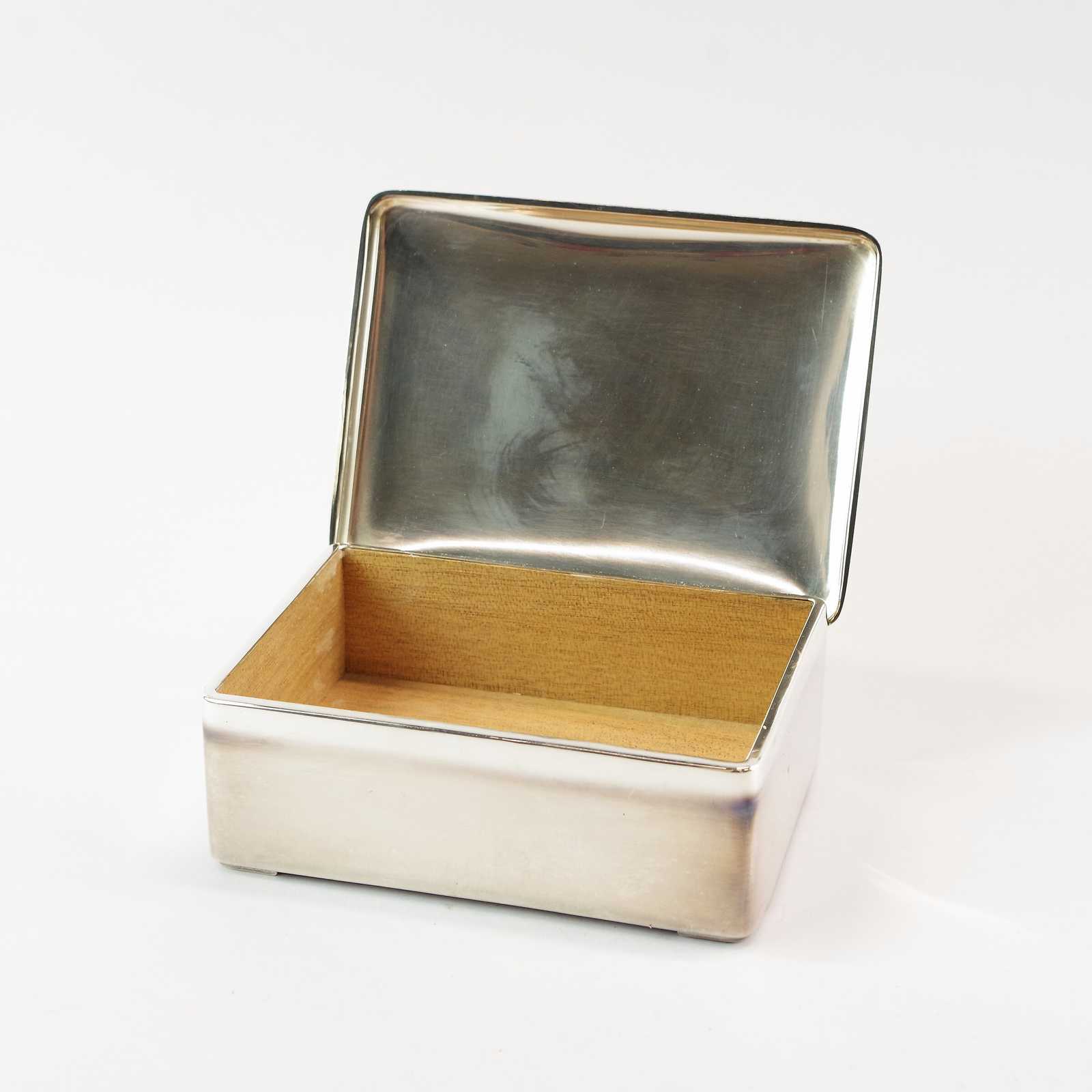 Auktioner Guld, Silver & Smycken SKRIN silver CGH 1955, med träinrede. 4,5*13*9 cm Total V:345,56g inklusive träinrede