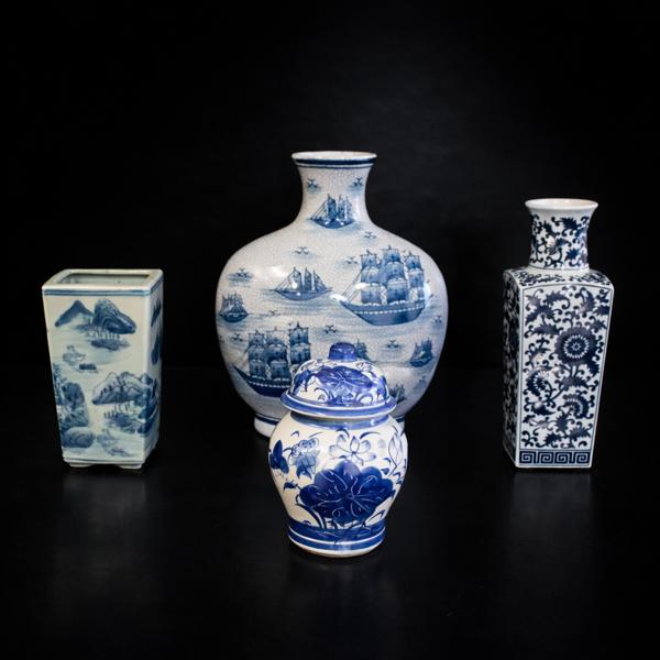 Höjd 16 - 30 cm. Varav två med märkning undertill.