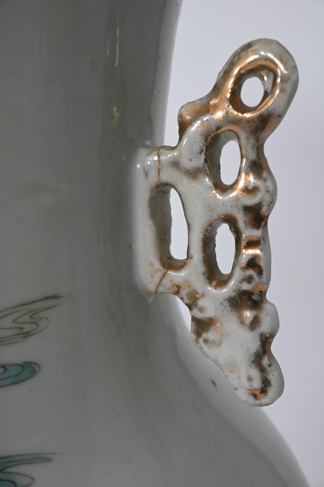 Målad dekor av figurer, en hänkel med lagning, mindre nagg, höjd 43 cm