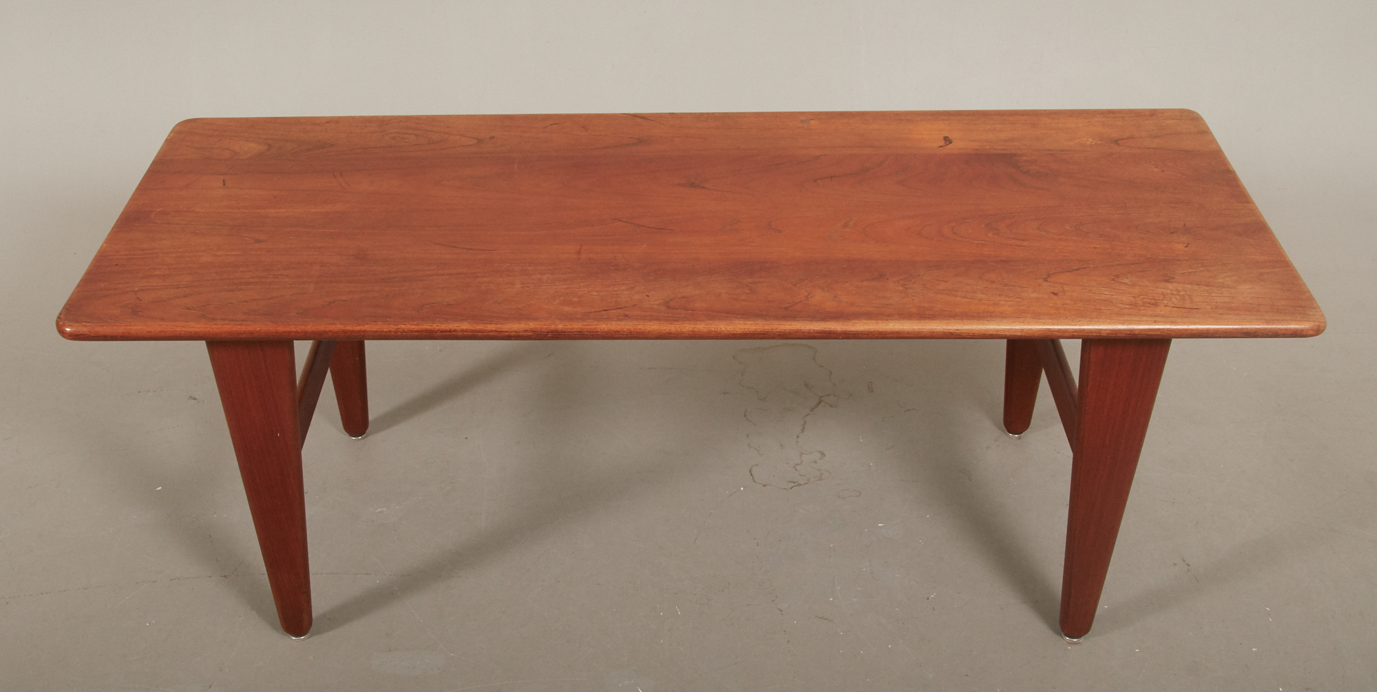 1960-tal, teak, 145 x 57 cm, höjd 53 cm, bruksslitage, skiva med fläckar.