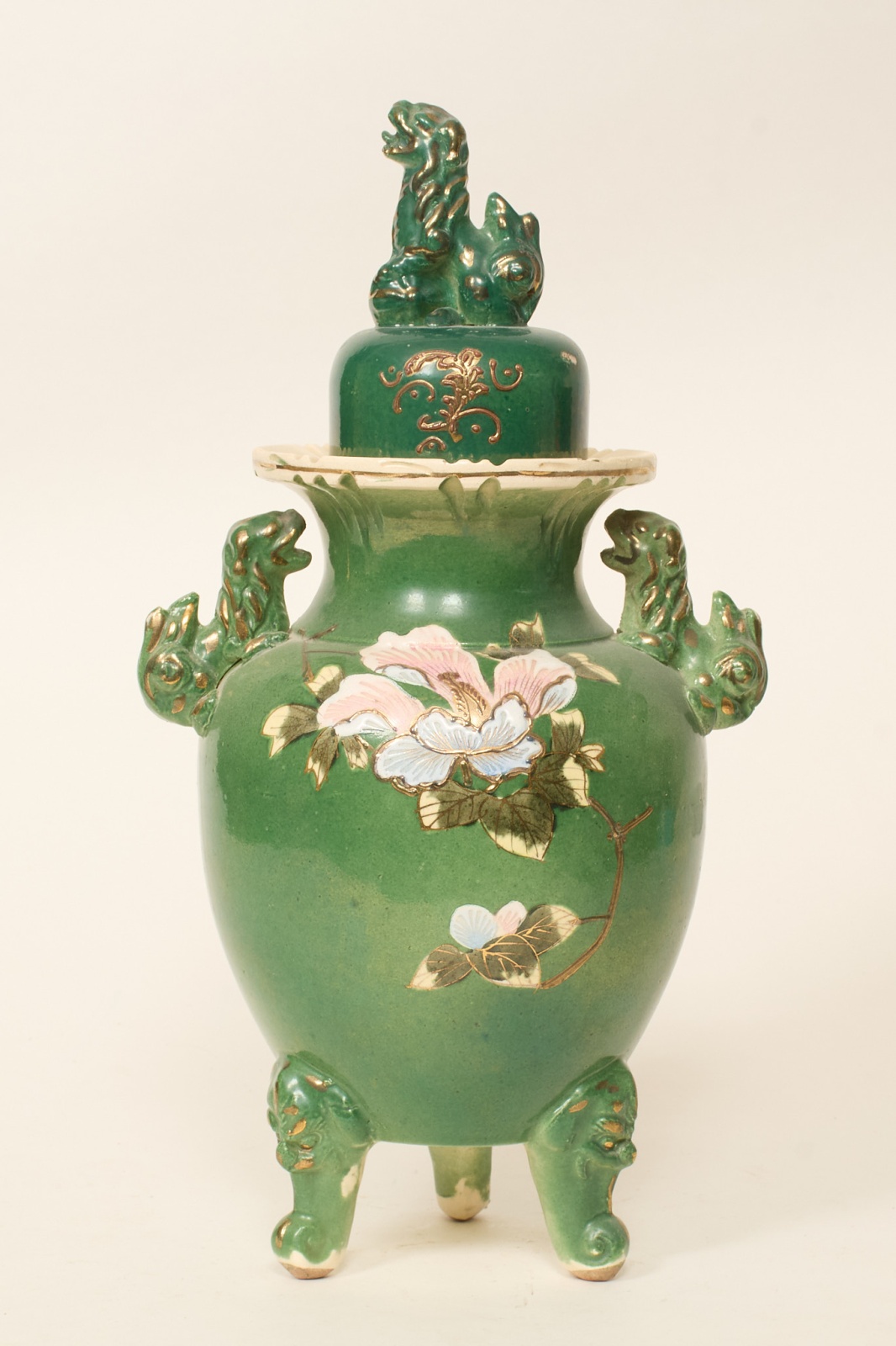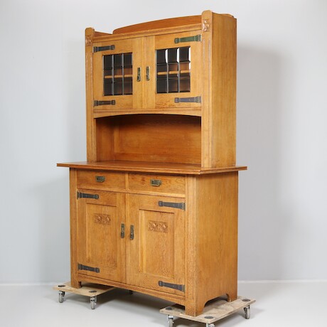 Polykrom dekor, höjd 42 cm, spricka, samt visst dekorslitage.