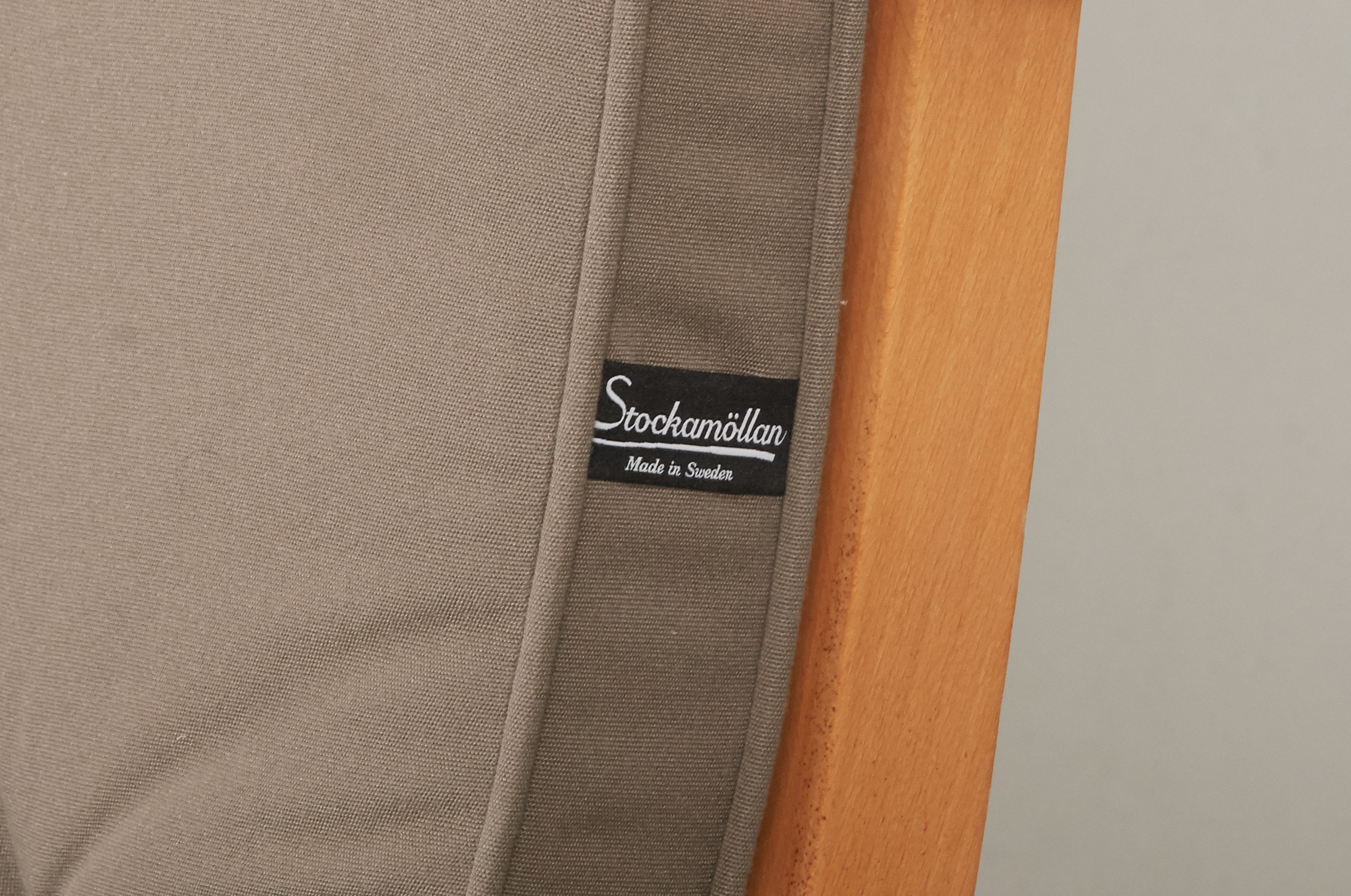 Serveringsbricka samt dyna. Längd ca 145, rygghöjd 84 cm, bredd 62 cm. Bruksslitage, torrsprickor