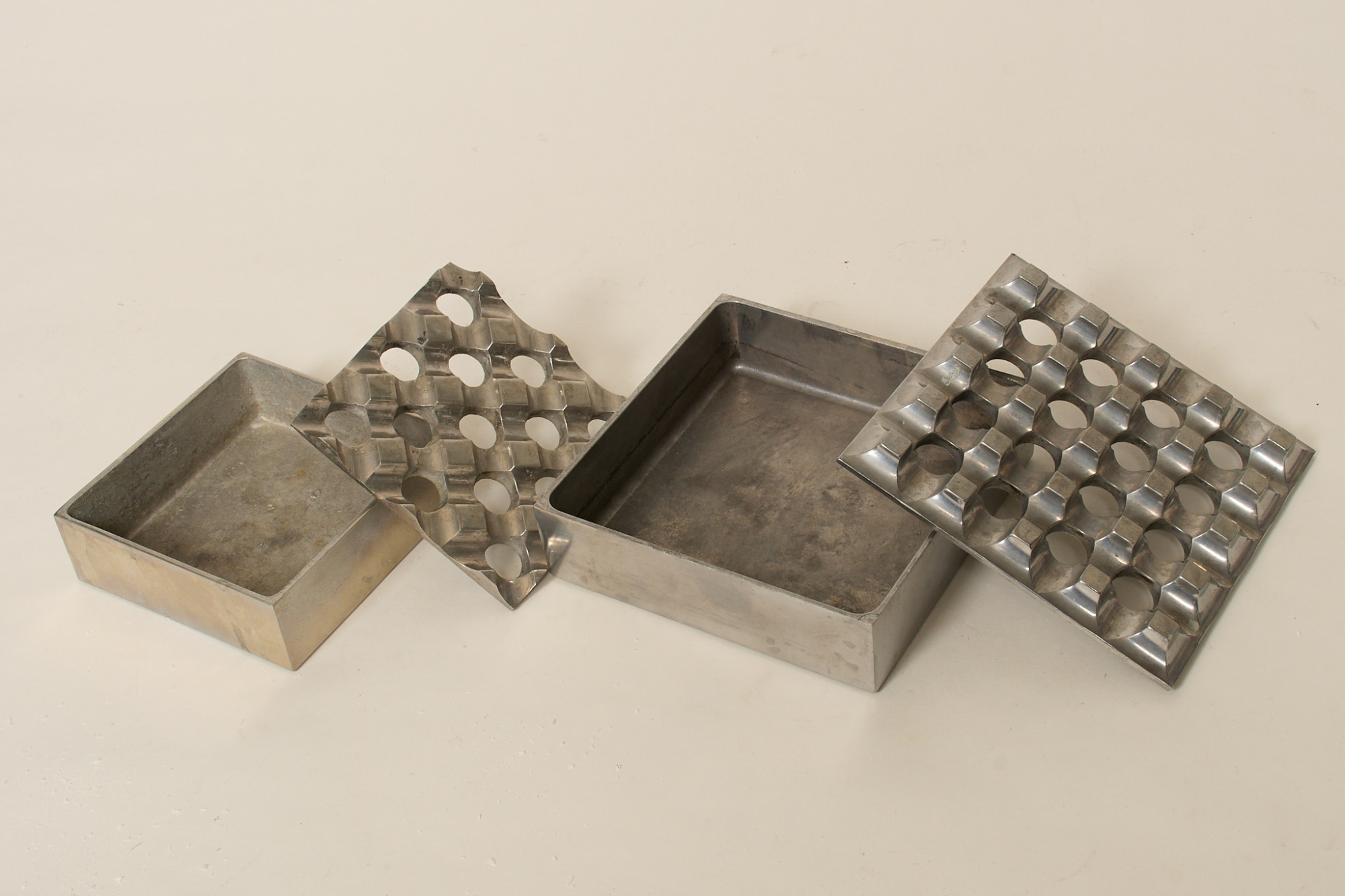 2 st, vitmetall, mått största 15 x 15 cm, bruksslitage.