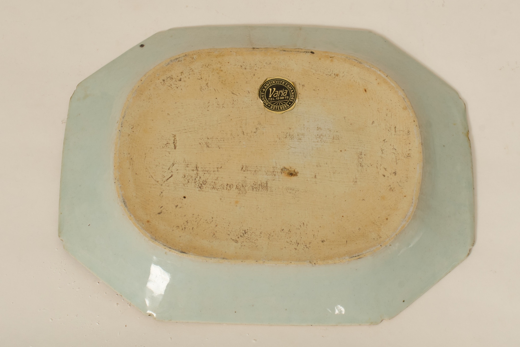 Dekor i underglsyrblått, med pagod och figurscen, längd 38 cm, visst kantslitage, annars smärre bruksslitage.