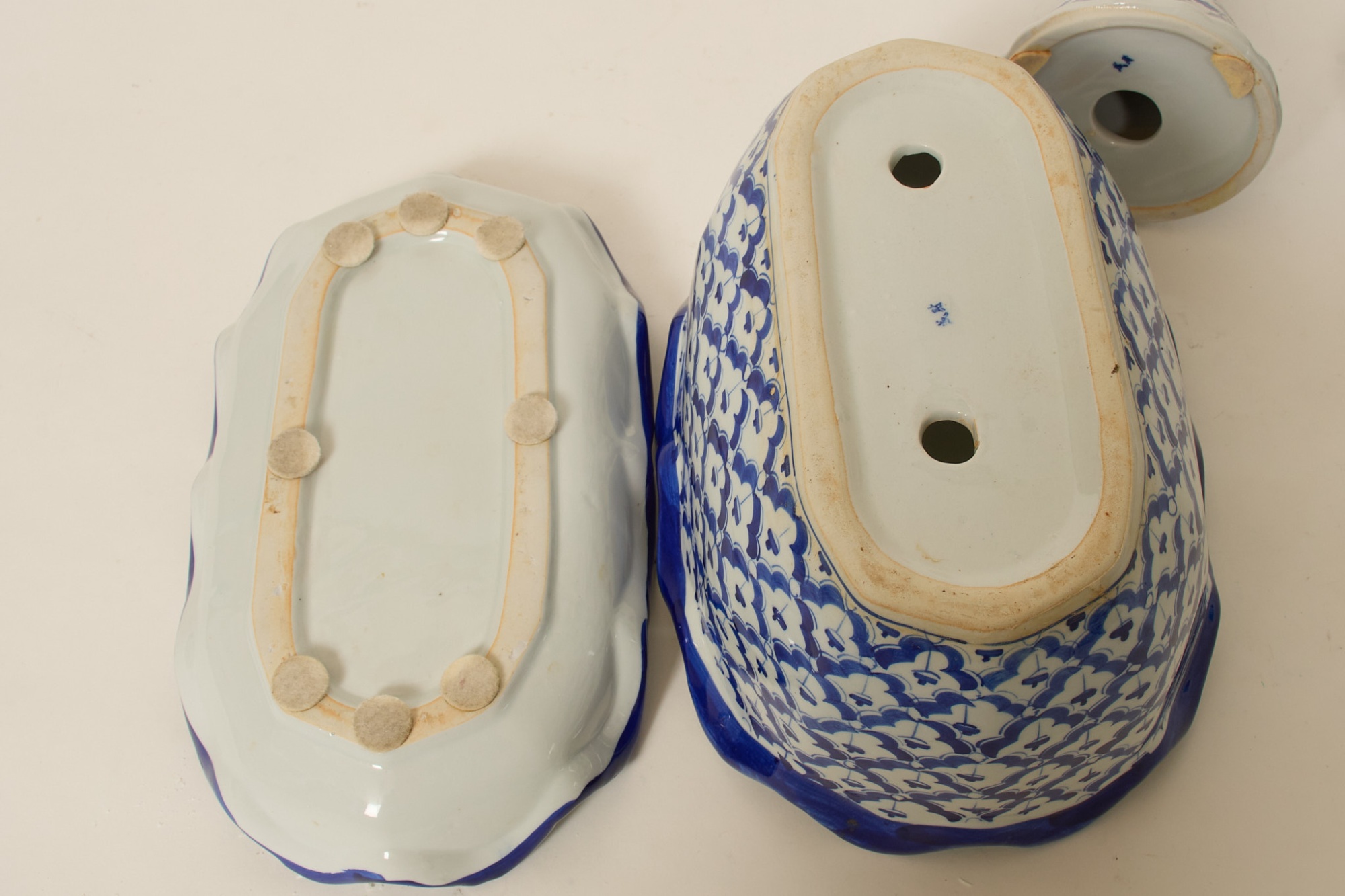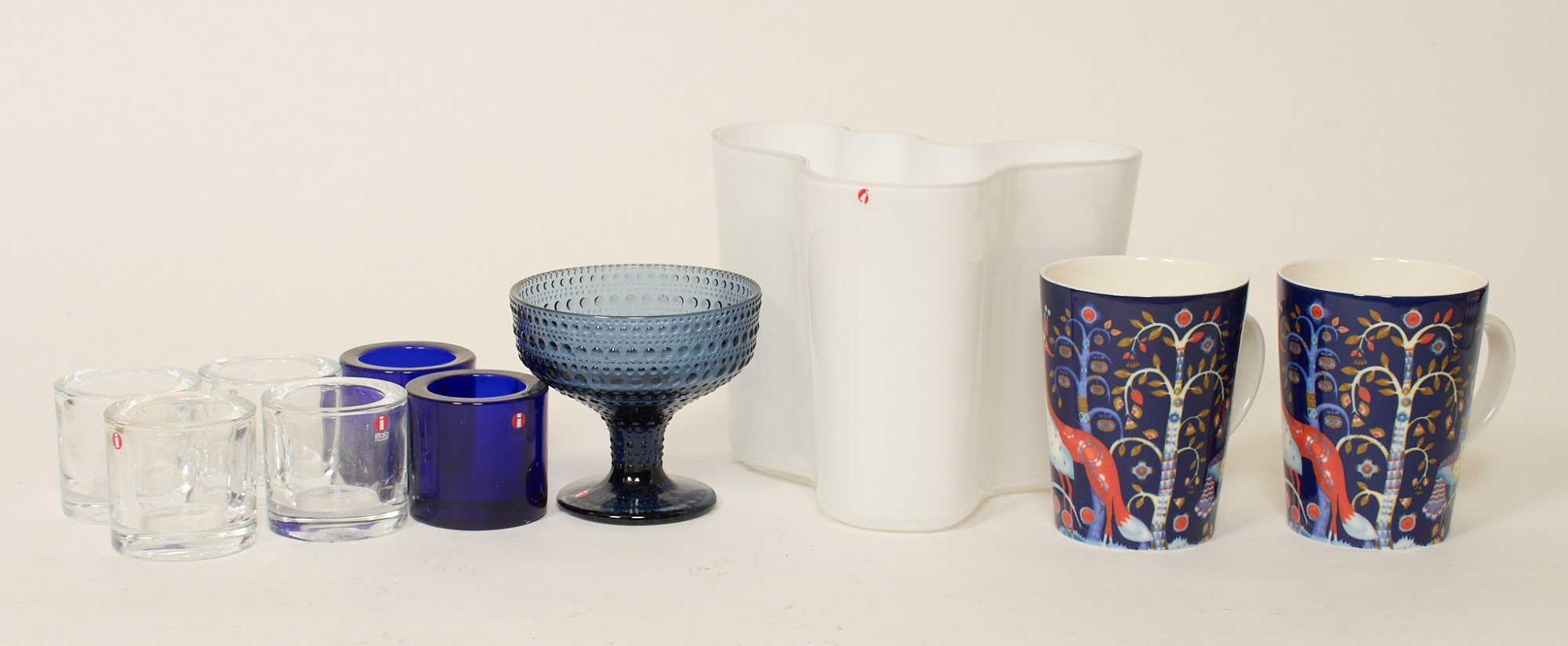 Ytterfoder med fat, 25 x 18 cm. Ett par ljusstakar, höjd 20 cm. Smärre bruksslitage.