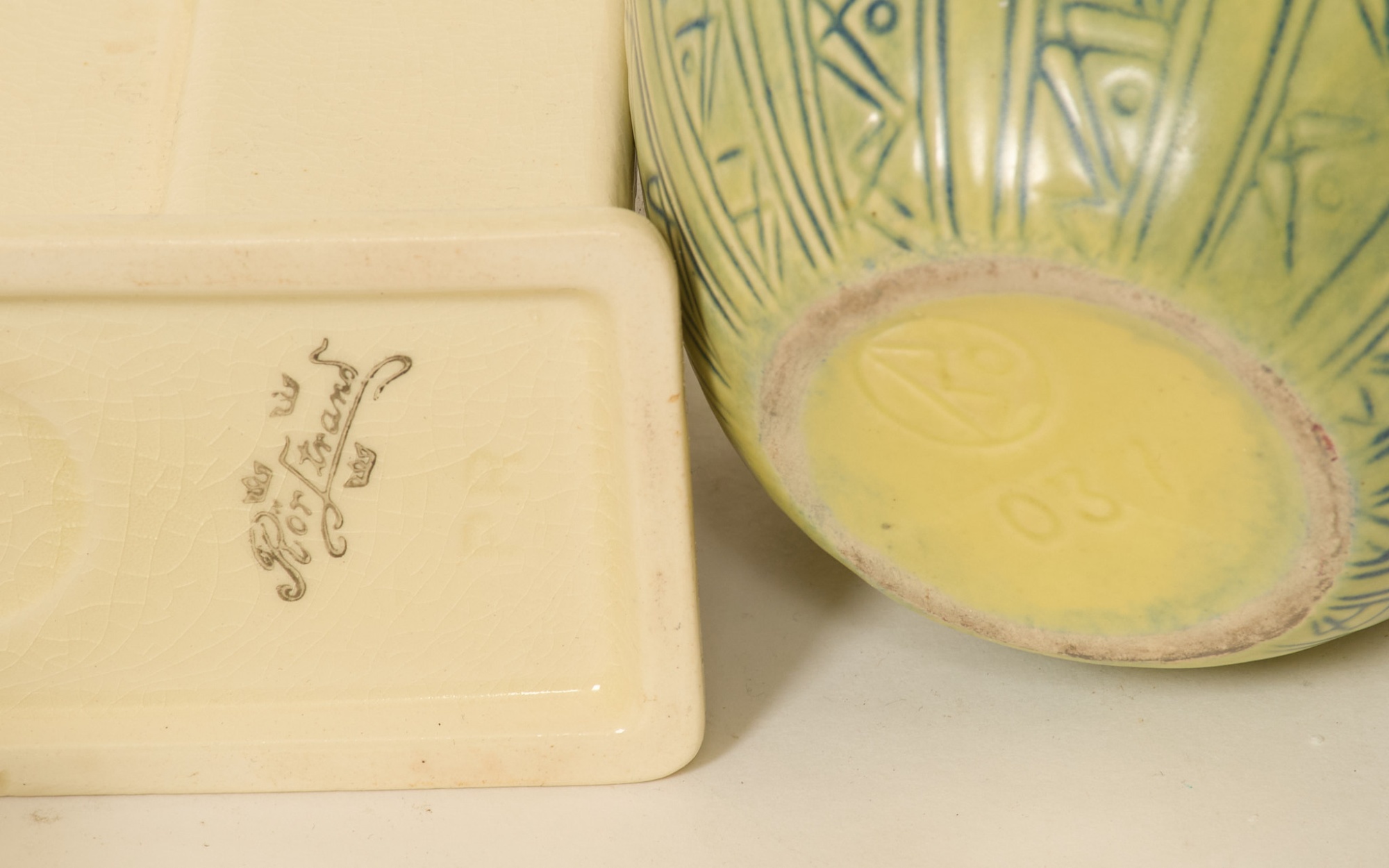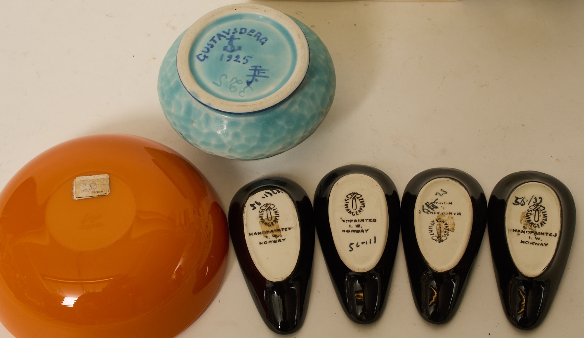 8 delar, bl.a. skål "Fuga", mindre vas, "Sgraffito", Josef Ekberg m.m. högsta höjd 14 cm, enstaka nagg förekommer.