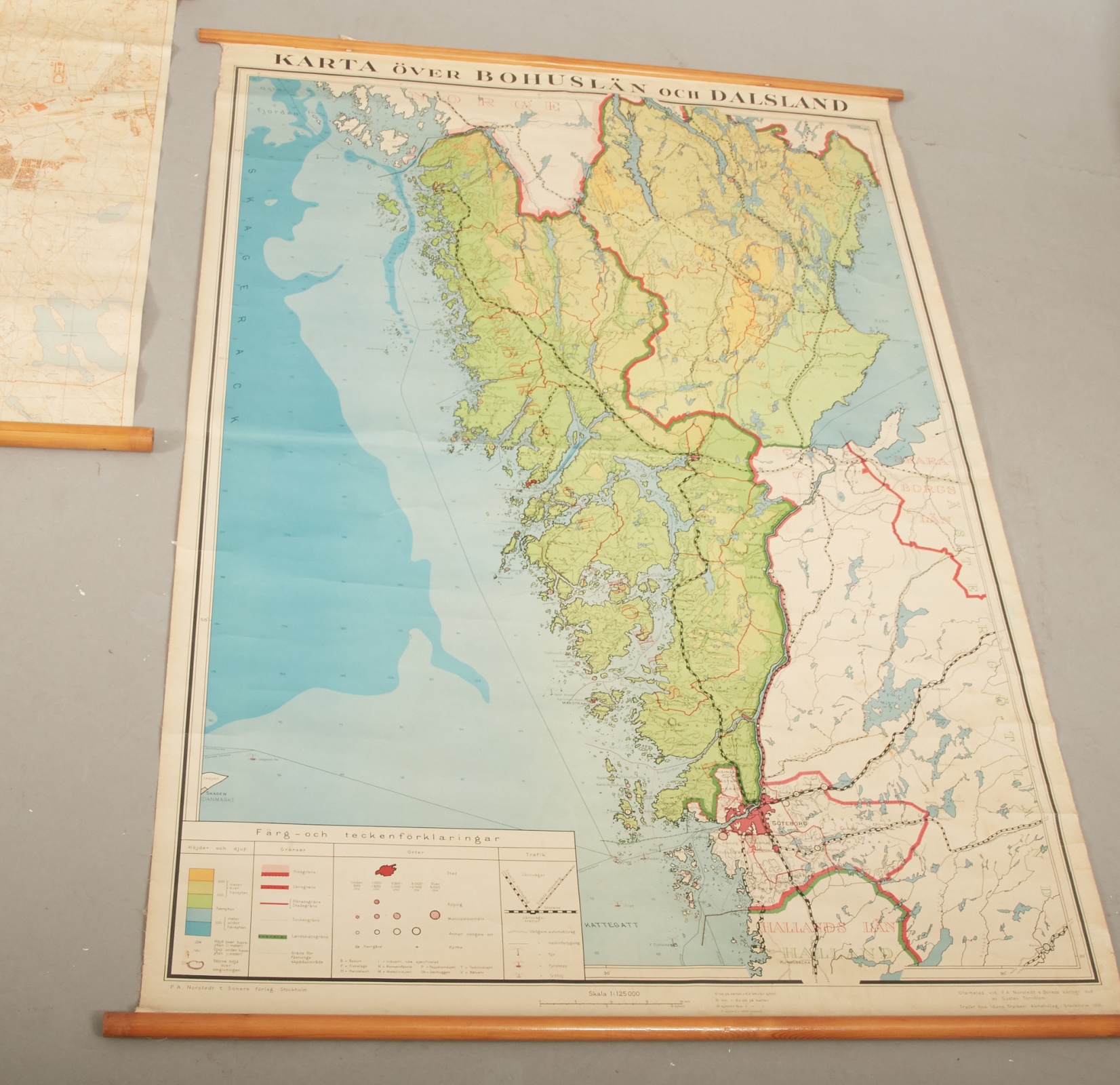 2 st, Göteborg plankarta, samt karta över Bohuslän och Dalsland, mått största 133 x 102 cm. Bruksslitage.