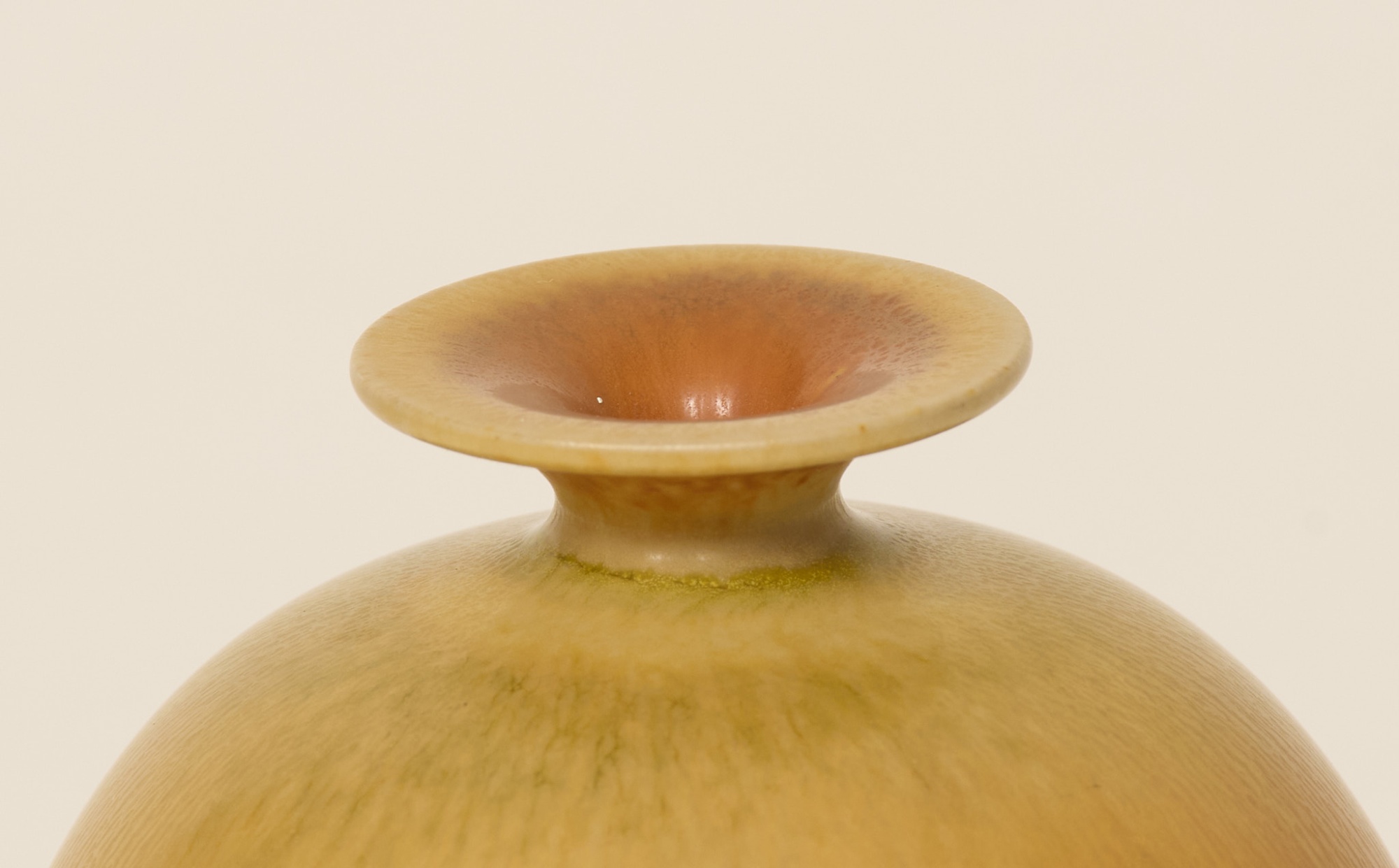 Stengods, med harpälsglasyr, studiohandsignerad, höjd 11 cm, smärre bruksslitage.