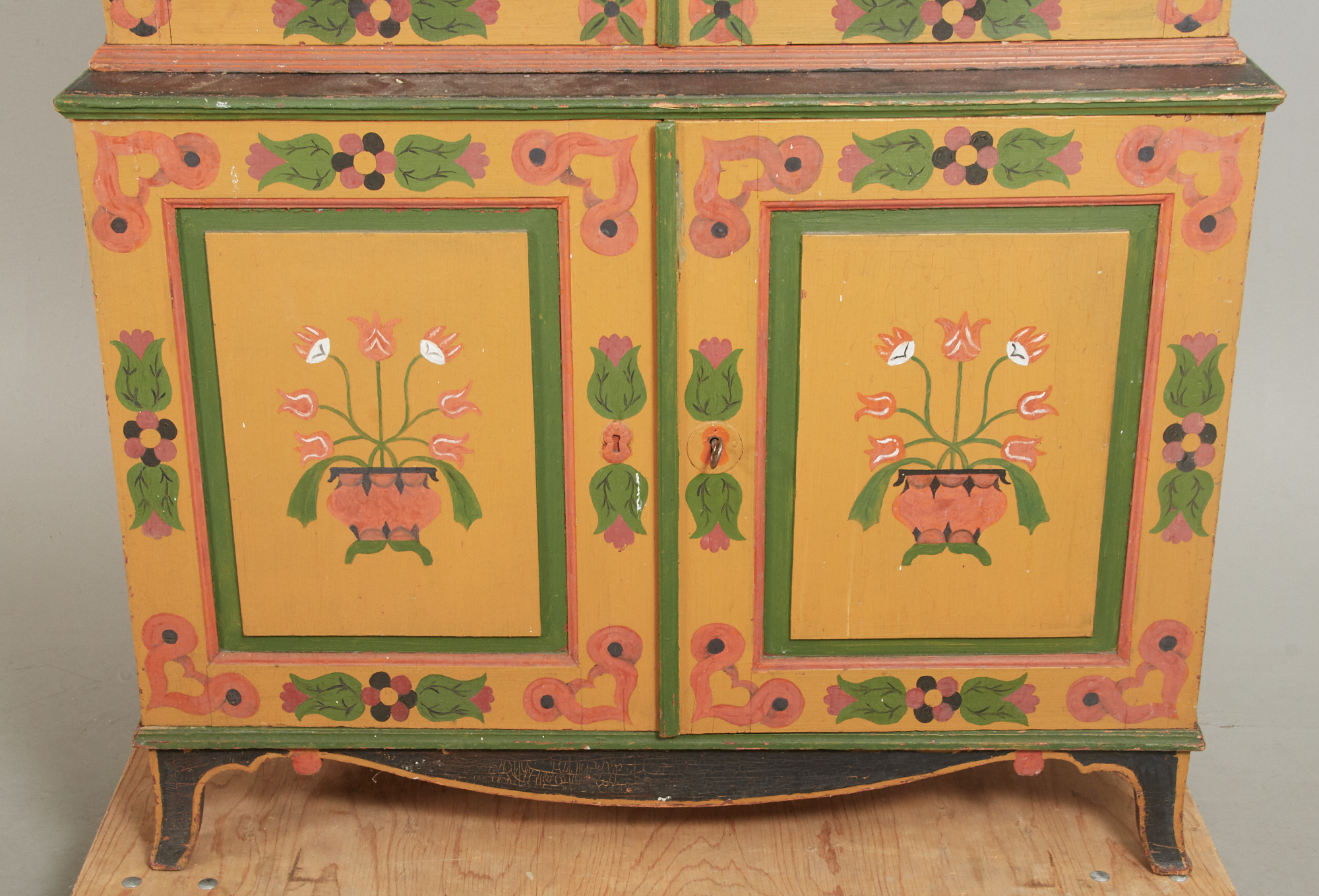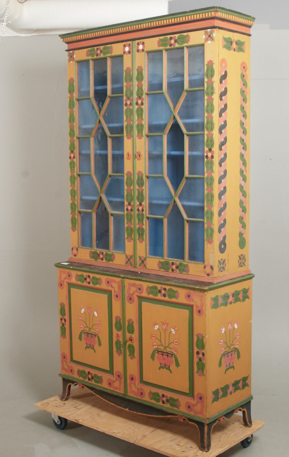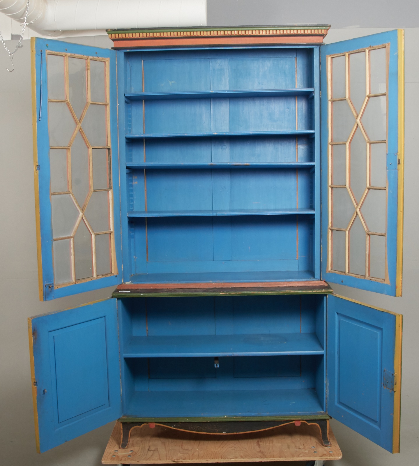 1900-tal, bemålat trä, 2-delat, bredd 110 cm, djup 41 cm, höjd 211 cm, åldersrelaterat bruksslitage.