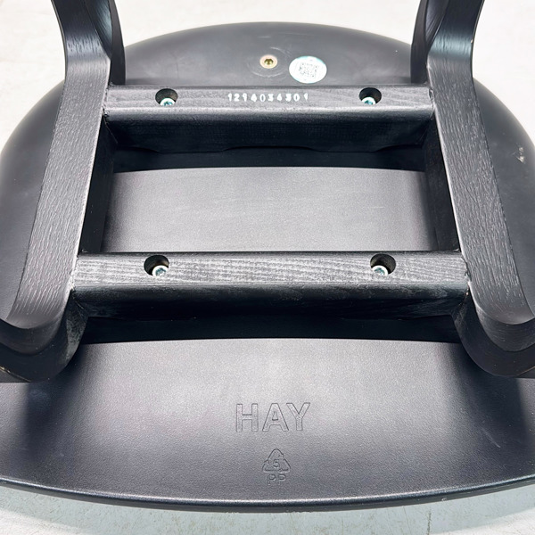 Barpall från HAY, modell AAS32. Underrede i svartlackerad ek med fotstöd i svartlackerat stål och svart plastsits.