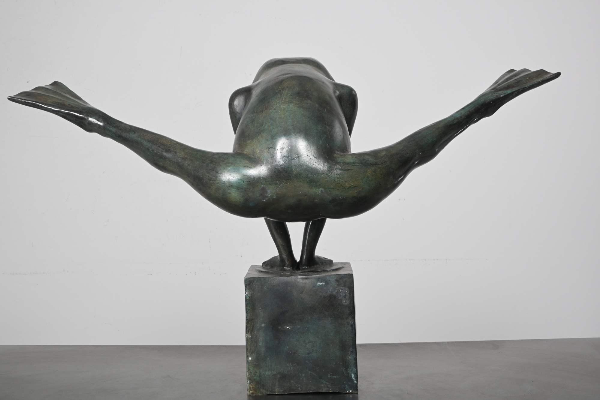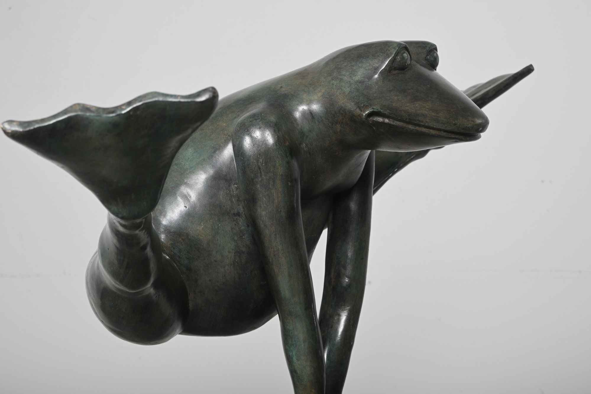 Skulptur Groda "Look at my legs" patinerad brons