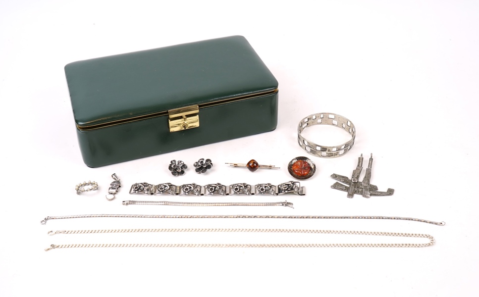 Bilder Halskedjor, broscher m.m, ett parti, silver 835-925.