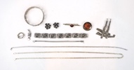 Halskedjor, broscher m.m, ett parti, silver 835-925.