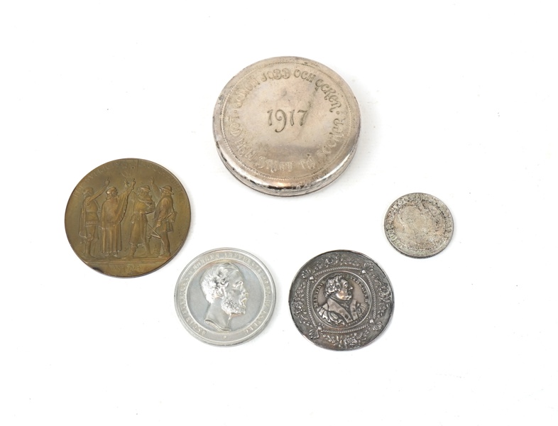 Bilder Minnesmynt m.m, 5 delar, metall.