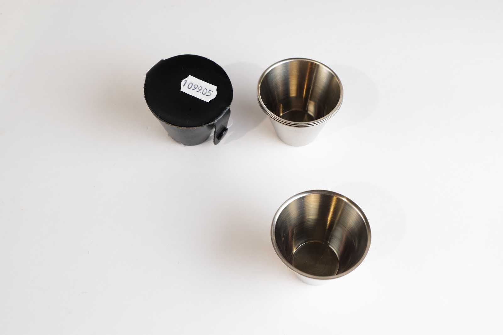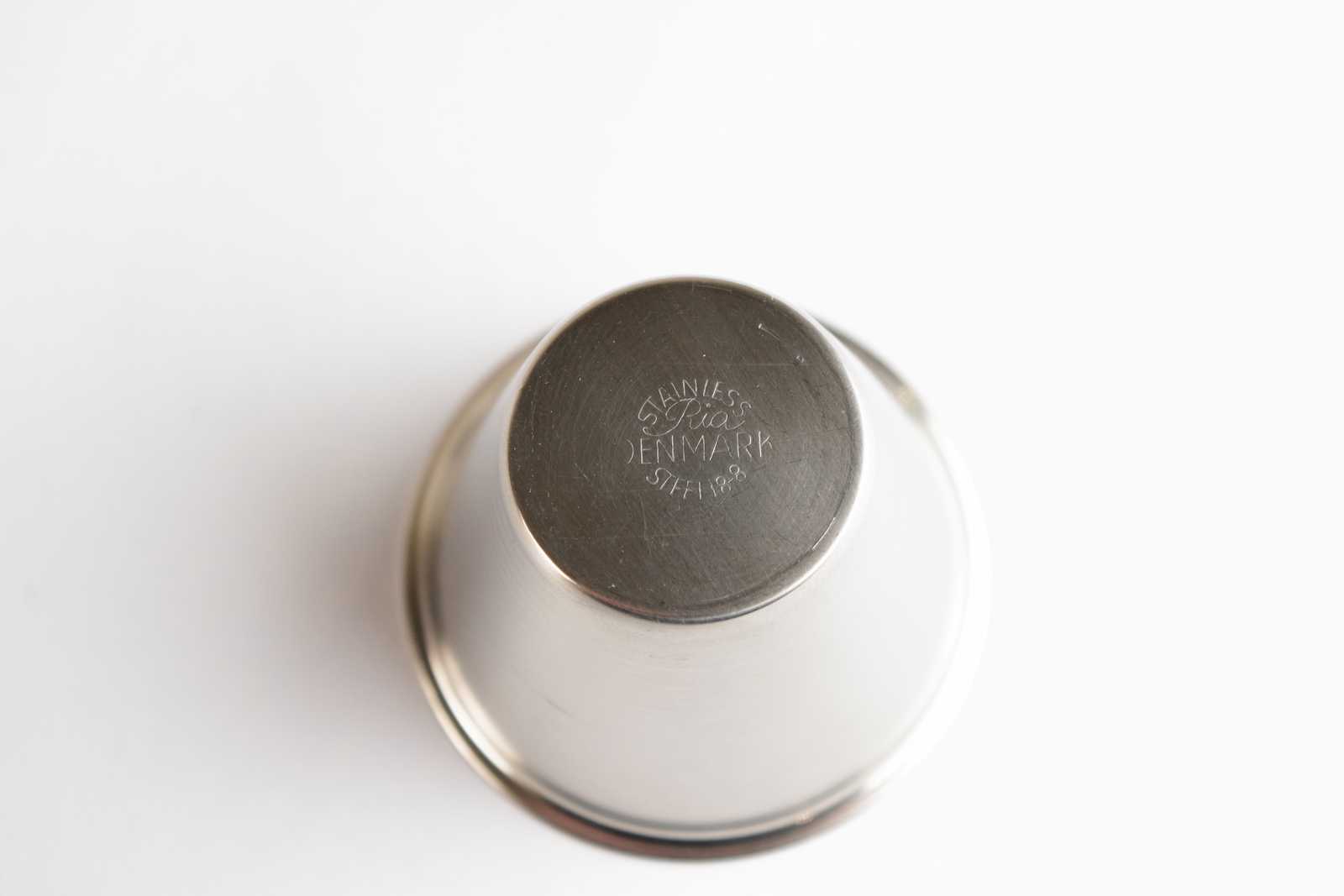 SUPMUGGAR 4st med etui. Danmark, rostfritt. D:5cm.