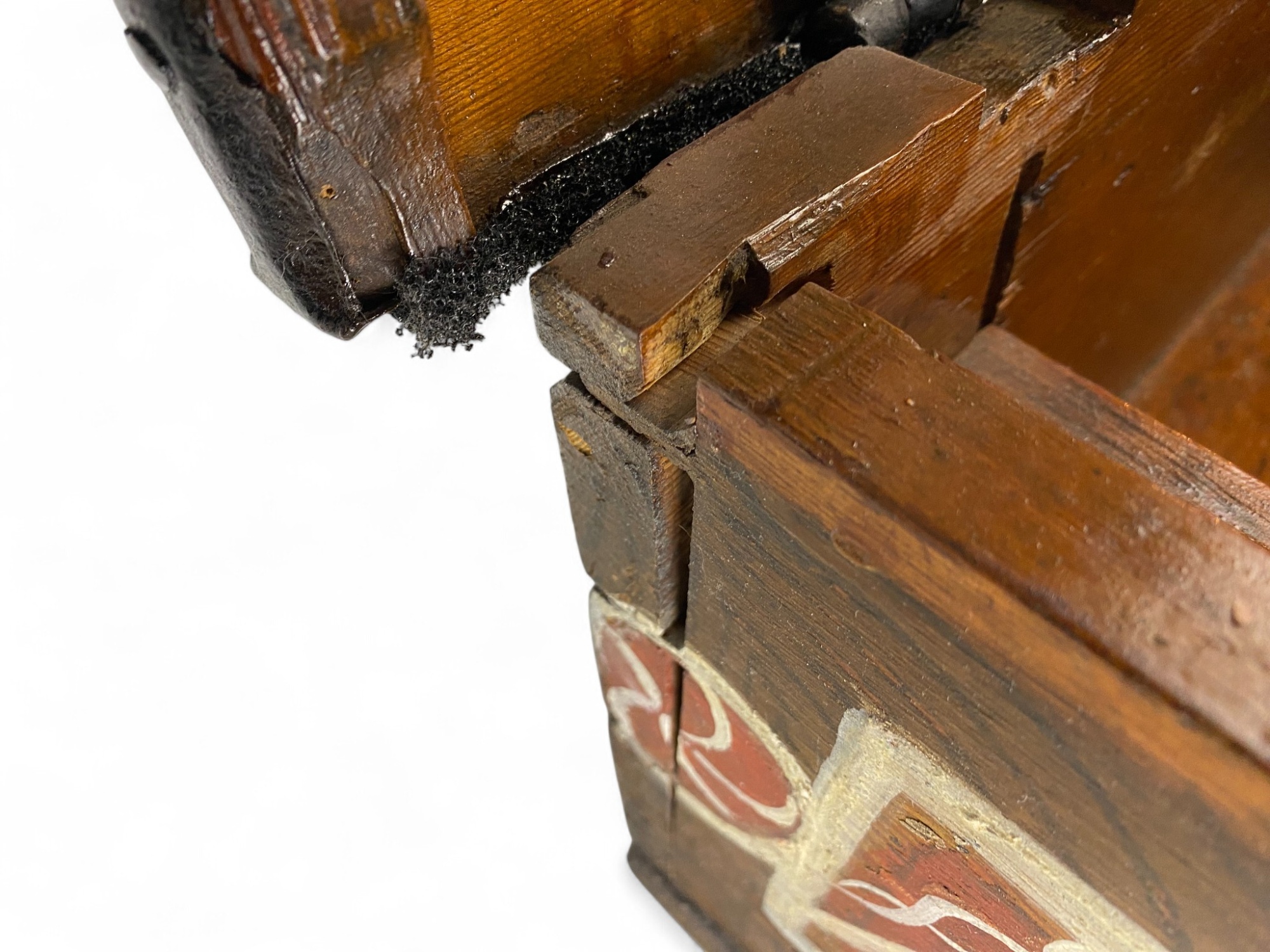 51x37, h.25cm. Ett hörn har fått en glipa