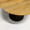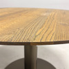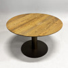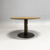 Bord från &tradition, modell "In Between SK12". Designad av Sami Kallio. Rund skiva i mörk ek och med pelarfot i svart som skiftar i brons.