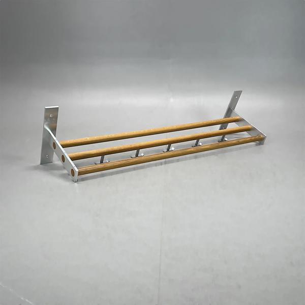 Hatthylla med 5 stycken krokar. Konstruktion i ek och aluminium.