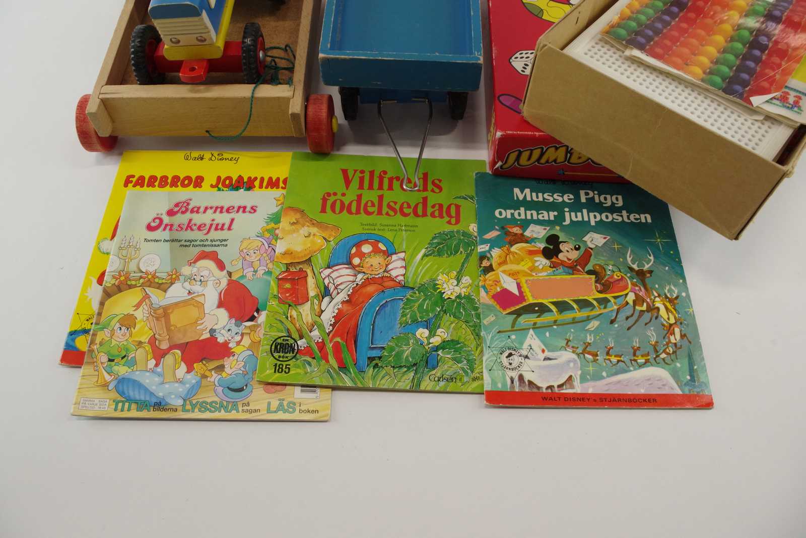 Bilder TRÄTRAKTOR med släp, BÖCKER & SPEL