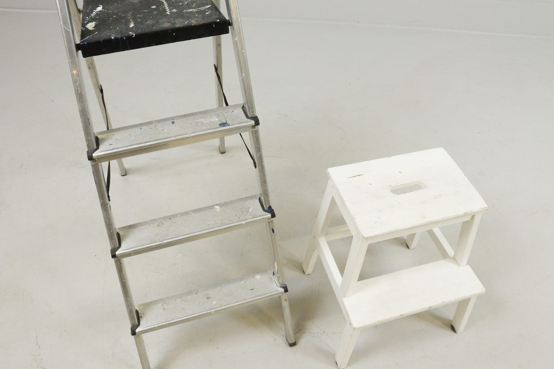 Stege och pall, metall och trä